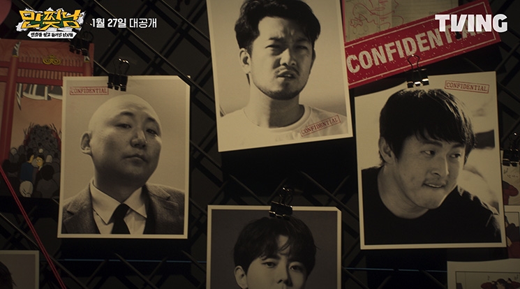 먼저 영상의 시작은 갖가지 메모와 사진들이 빼곡한 벽 중앙 ‘confidential(기밀사항)’ 빨간 마크가 찍힌 이말년, 주호민, 기안84, 주우재의 사진들을 비추며 미스터리한 기운을 예고하였습니다